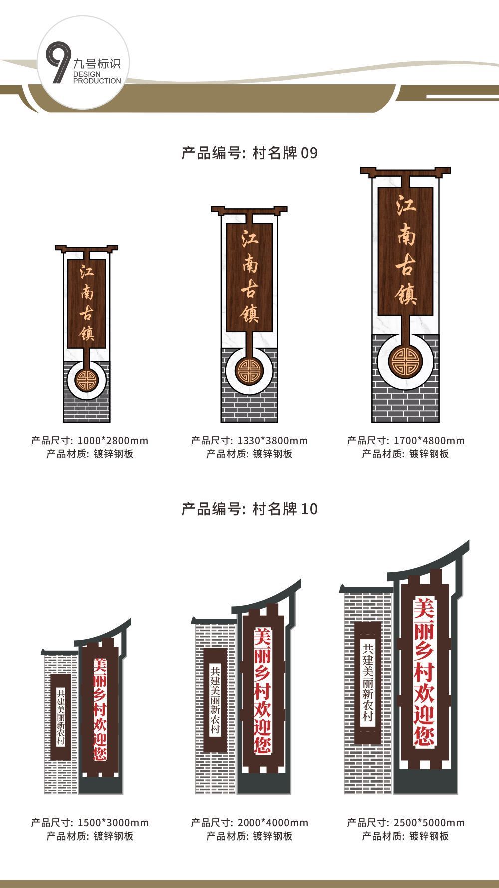 村名牌是美丽乡村建设的点睛之笔,深入贯彻实施乡村振兴战略,彰显了乡村文明,提升了乡村的文化内涵。村名牌材质多样,常用有镀锌钢板、不锈钢等。风格更是数不胜数,有党政文明建设风格、砖石仿古风格、木纹雕刻镂空风格等等。