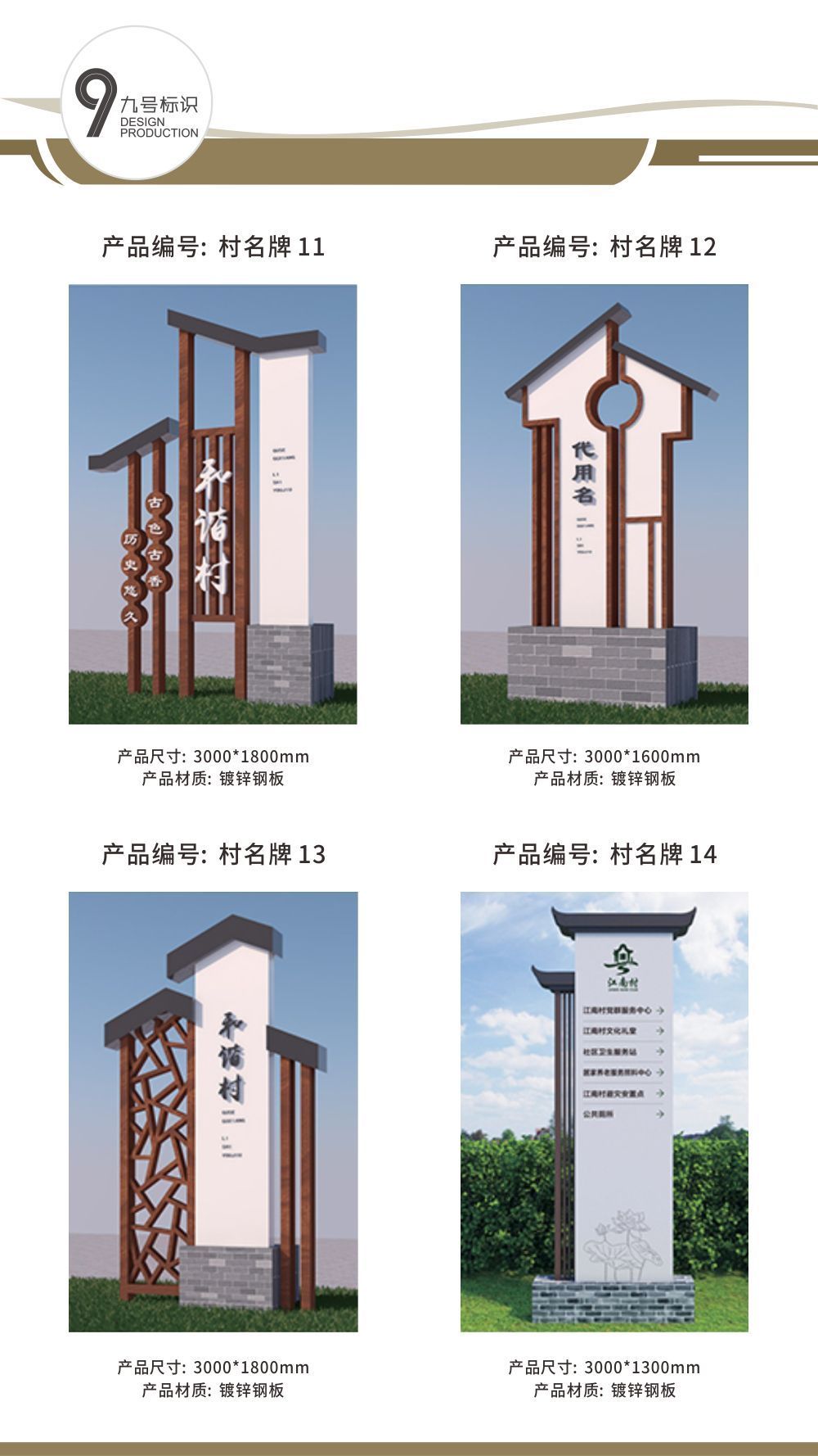 村名牌又常常称为:户外村名牌指示牌、 乡村文明建设村名牌、户外仿古村牌、乡村振兴村名牌、不锈钢村名导向牌、村口标识牌