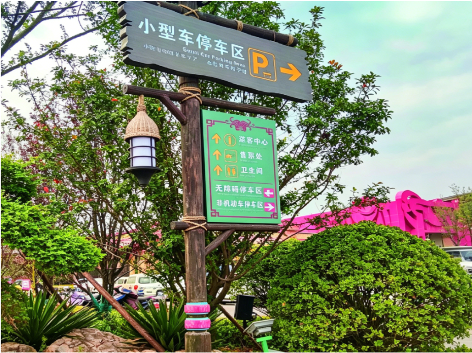 材质选用上,精挑细选坚固耐用且质感古朴的木材与金属。木材经过特殊处理,保留其天然纹理,传递出温暖亲和的文化气息;金属部件经过精细锻造和打磨,呈现出精致的光泽与质感,契合景区的文化定位。同时,在标识牌的排版设计上,采用规整端庄的书法字体,搭配简洁明了的图示,让信息传达既准确又富有文化韵味。
