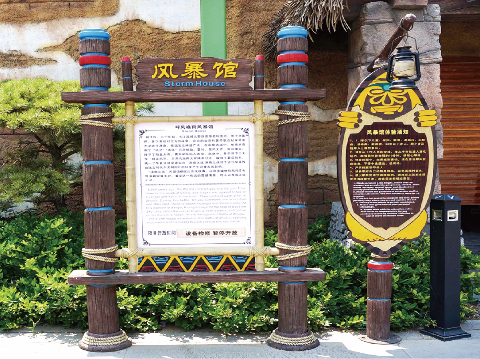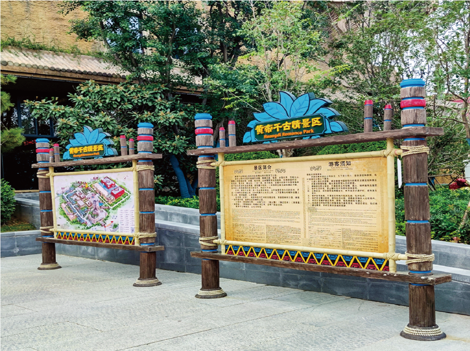 在景区入口,设置大型全景导览标识,以直观的图示和简洁的文字,让游客对黄帝千古情的整体布局、核心演艺场馆与文化景点了然于胸。沿着游览路线,导览标识有序分布,它们如同无声的向导,指引着游客穿梭于千古情大剧院、黄帝广场、主题游乐区、民俗商业街等各个板块之间。在每座核心场馆、文化节点前,场馆介绍标识详细阐释其演艺内容、文化内涵与观演指南。文化弘扬标识则巧妙地融入黄帝文化典故、中华始祖历史、民俗非遗技艺等内容,让华夏文明如春风化雨般滋润游客心田。安全提示标识虽低调却贴心,默默守护着游客的每步行程,尤其在剧场入口、客流密集区等区域,筑牢安全防线。