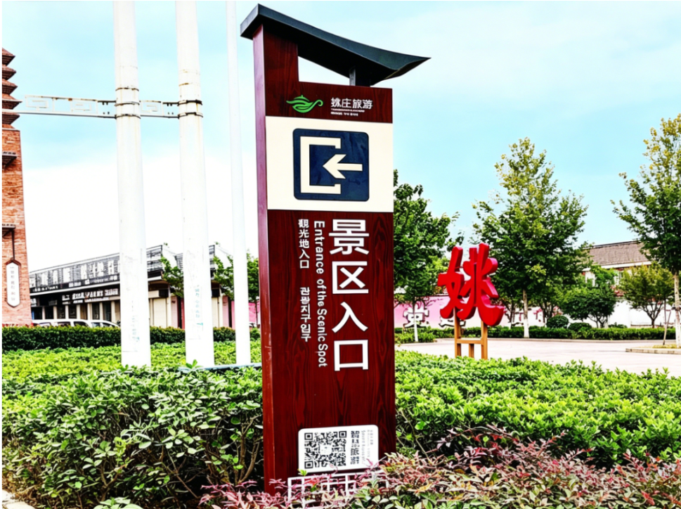 入口全景标识:如本打开的民俗画卷,以简洁的地图与精炼的文字,向游客徐徐展开姚庄旅游区的全貌,让初来者能迅速明晰游览的方向。